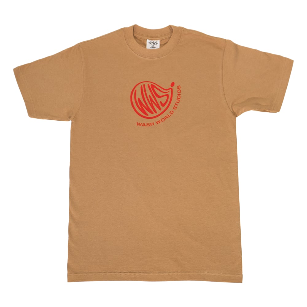 Now onto the front, a spicy hit of infrared. Not red, not orange. Infrared. Like your shirt got too close to a laser pointer and said, “I like it here.” Right across the chest it reads: Wash World Studio.