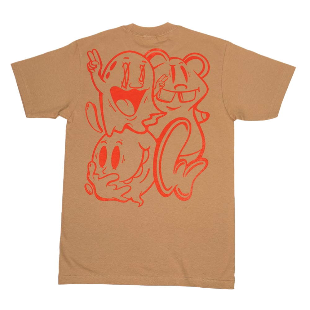 Then you turn around and bam, it’s cartoon chaos in full glory. A big, bold, original cartoon back print that’s serving Saturday morning nostalgia meets underground zine energy. It’s like your shirt went to art school and majored in “How to be the coolest part of any room.” There’s whimsy, there’s weirdness, and probably at least one character on the back that could get its own Netflix special.
